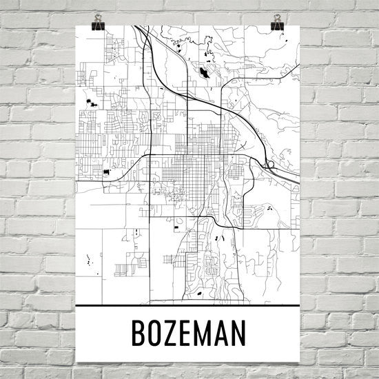 Bozeman MT Street Map Poster Wall Print by Modern Map Art
